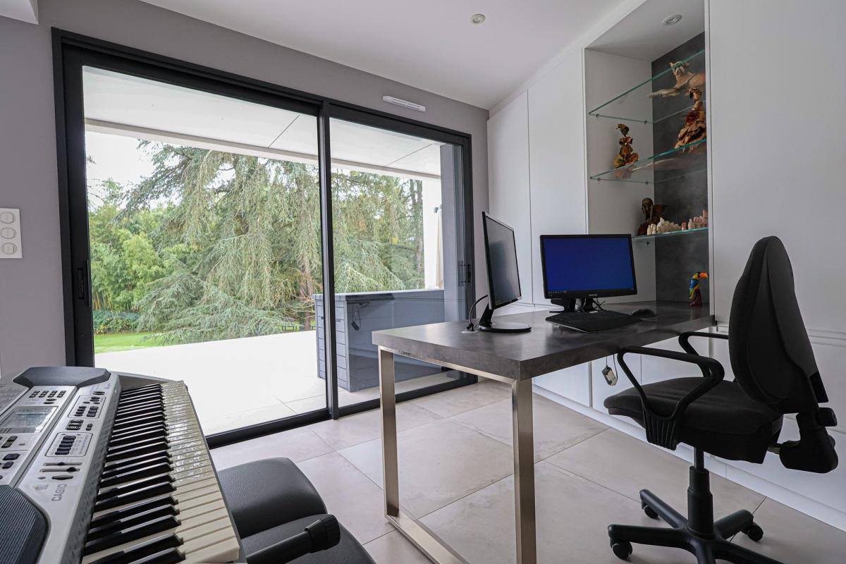 Le bien comprend quatre chambres, un bureau, ainsi qu’une distribution fluide et parfaitement pensée.