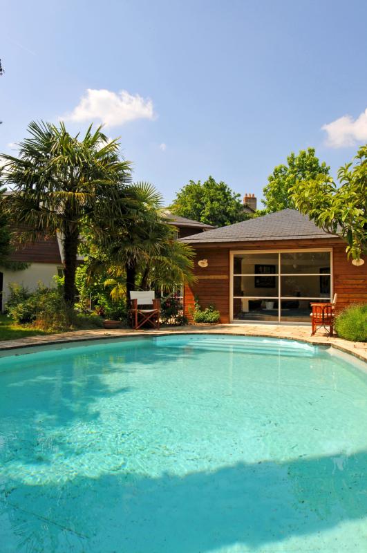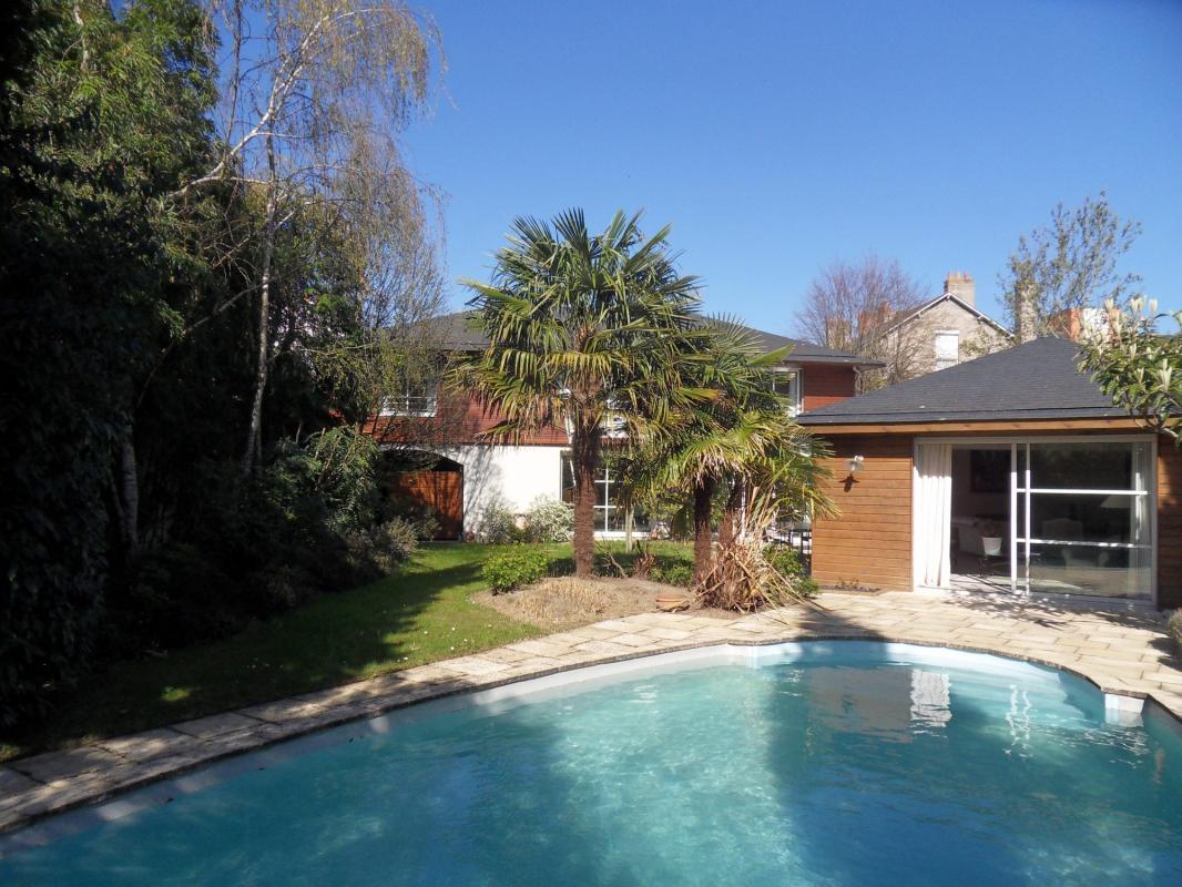 L’espace de vie entièrement ouvert sur le jardin Sud Ouest et la piscine, est composé d’un vaste séjour de 51m², d’un espace dinatoire accueillant la salle à manger et la cuisine familiale et d’un coin feu permet de profiter de la cheminée. A l’entrée de la maison : un grand bureau pourra accueillir une activité professionnelle indépendante. L’appartement parent de plain pied sur la jardin s’ouvre sur une canopée de verdure et la piscine. A l’étage vous trouverez 6 chambres toutes aménagées de rangements personnalisés. DPE C Chaudière à condensation 2018.